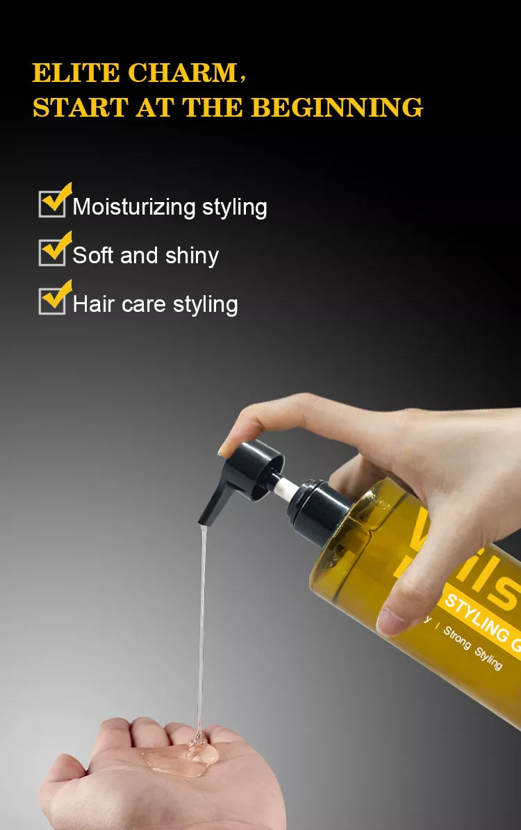 Wilson Men's Ultra Smooth Seamless Hair Styling Gel kozmetika se nanaša na oblikovanje las in učinek spreminjanja kozmetičnih izdelkov, razpršenih ali nanesenih na lase, izhlapevanje topila in sušenje na laseh, da nastane prozoren film, tako da se lasna vlakna strdijo in ohranijo obliko z namenom, da zadostijo potrebam različnih frizur.